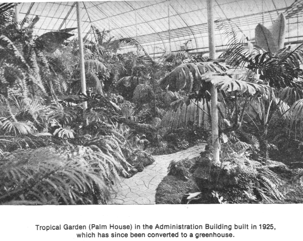 The flowers were not only for the grounds but also for sale in the greenhouse shop. The extensive use required several greenhouses and a section of hotbeds.